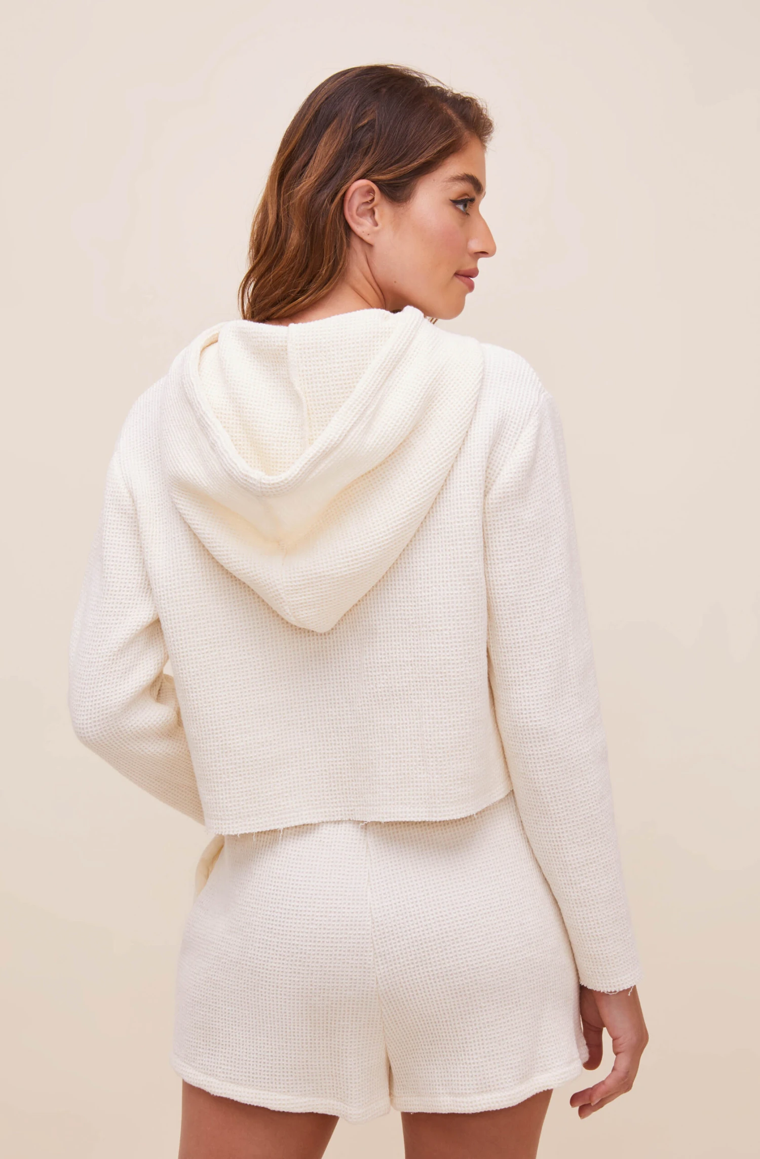 Staying in goes chic. These waffle knit sweatshorts feature a flattering high waist with a drawstring accent and slanted hip pockets.