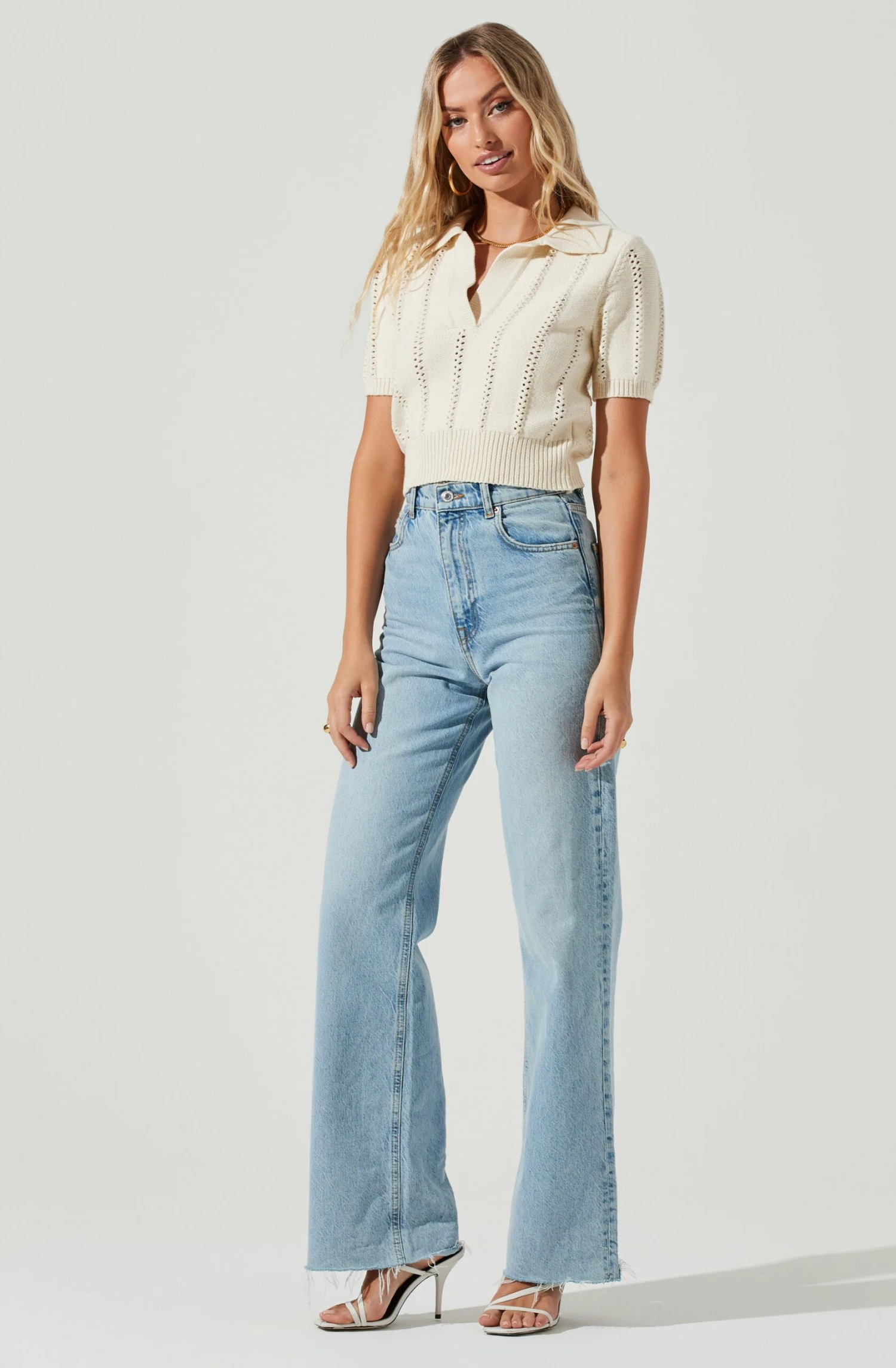 Be the first to review “Cambria Pointelle Knit Short Sleeve Sweater” Cancel reply