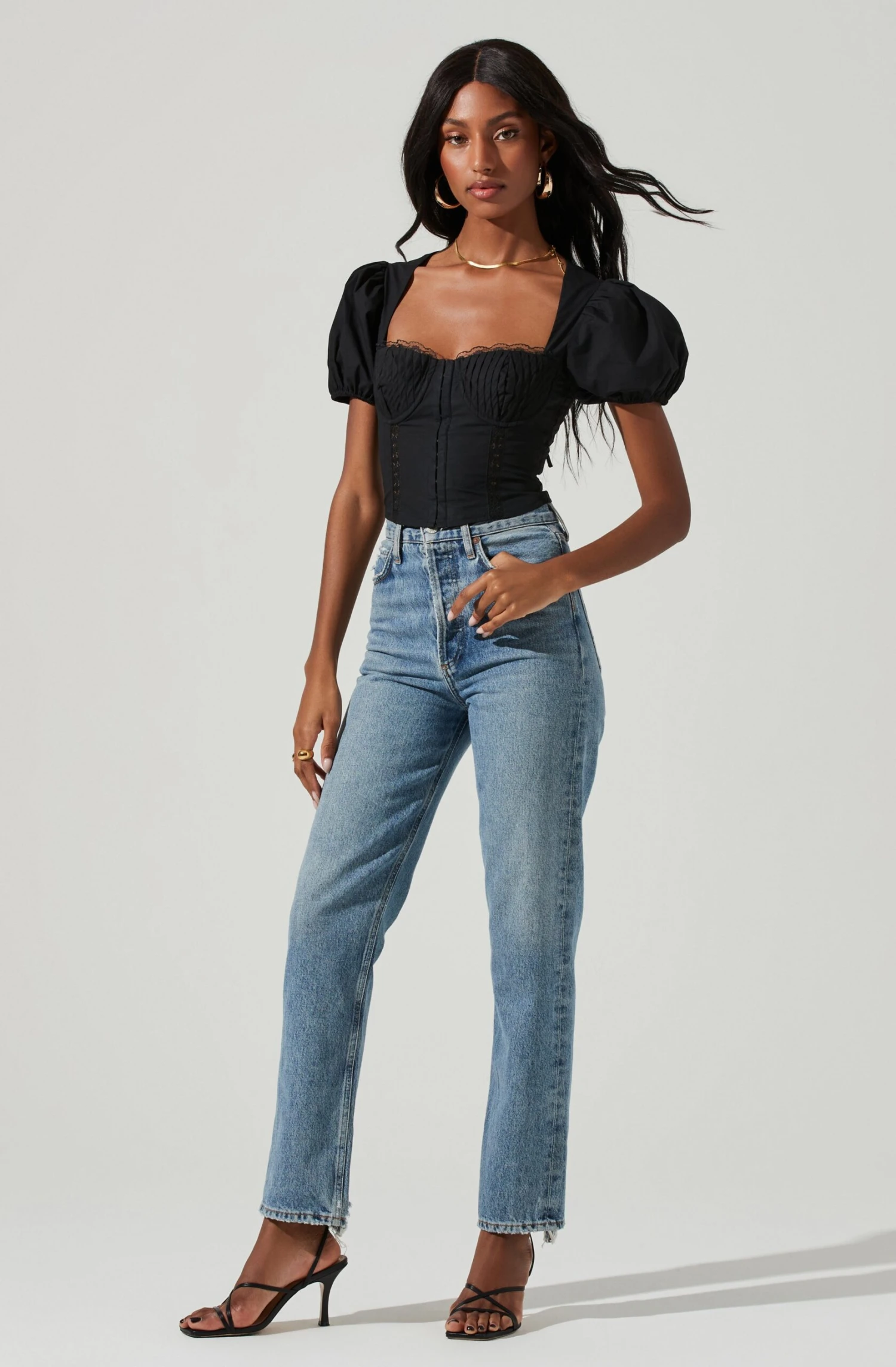 Be the first to review “Cupped Short Puff Sleeve Hook And Eye Top” Cancel reply