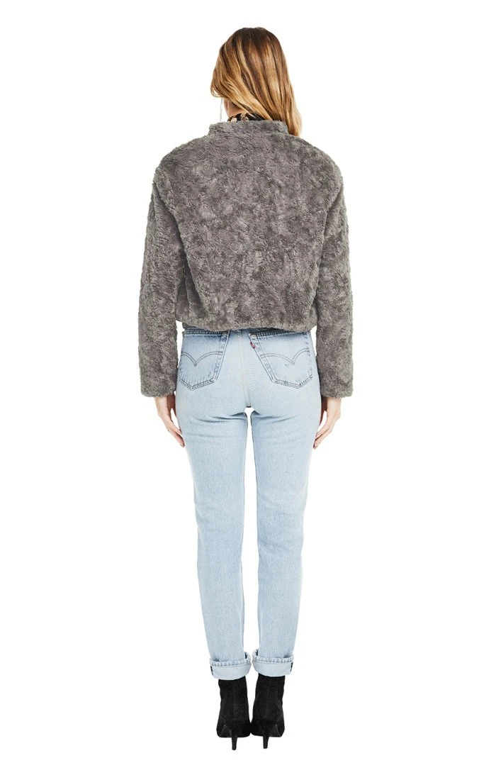 100% Polyester, 100% Rayon, Length: 24 7/8″ (Size M), Zipper Closure, Dry Clean Only, Faux Fur Jacket, Model is Wearing Size S, Model’s Measurements: Height 5’9″ // Bust 33″ // Waist 25″ // Hips 35″, Fits True to Size, Style#ACT12598