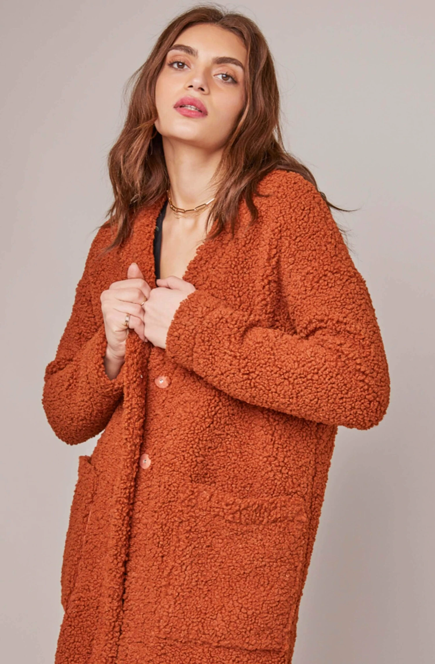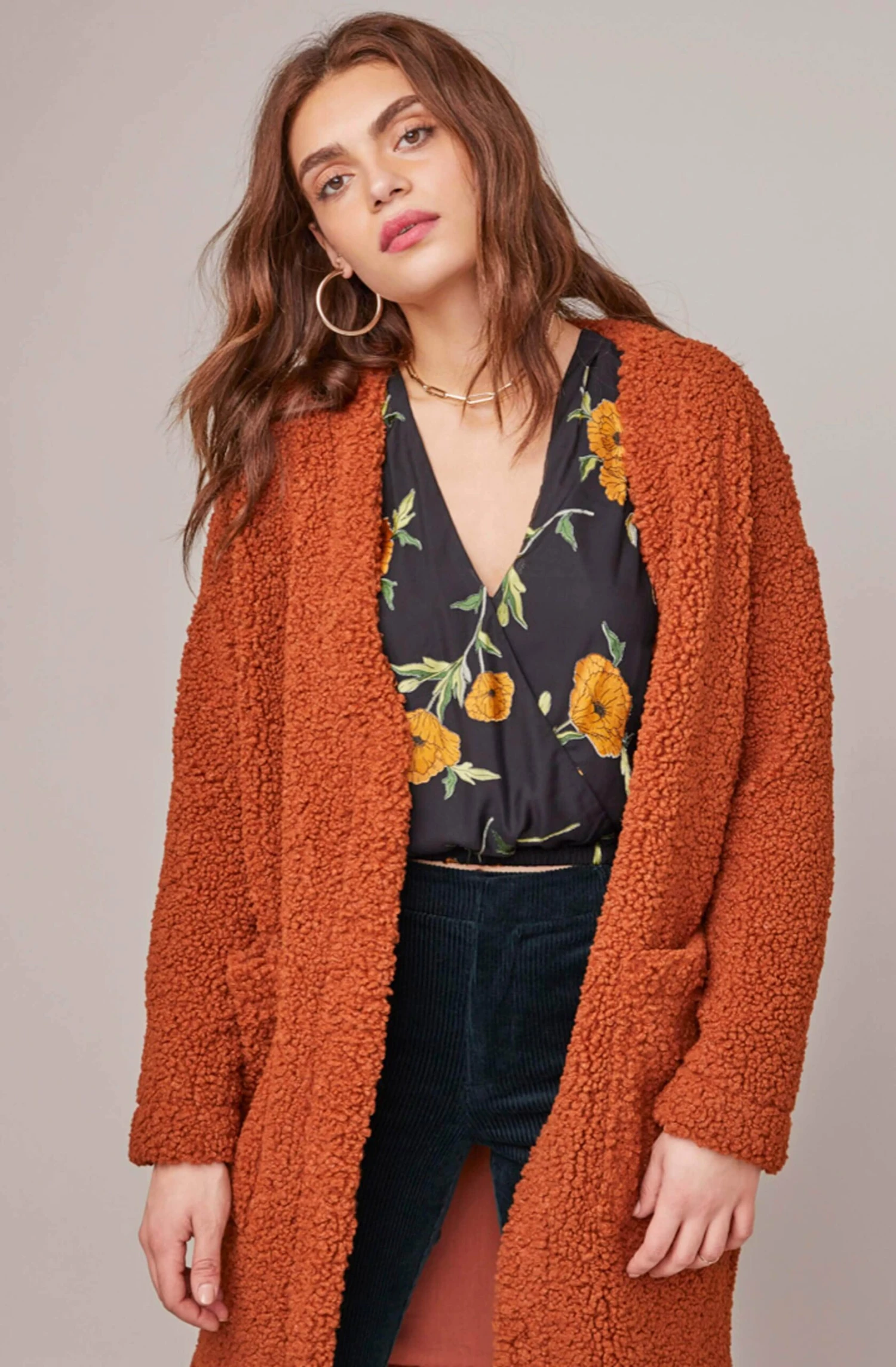 You’ve got yourself a cozy day outfit! Whether you wear it over a dress or jeans and a tee, this coat is sure to keep you warm! Featuring a longline silhouette, the open front also includes button accents. Long sleeves and oversized patch pockets.ÂÂ