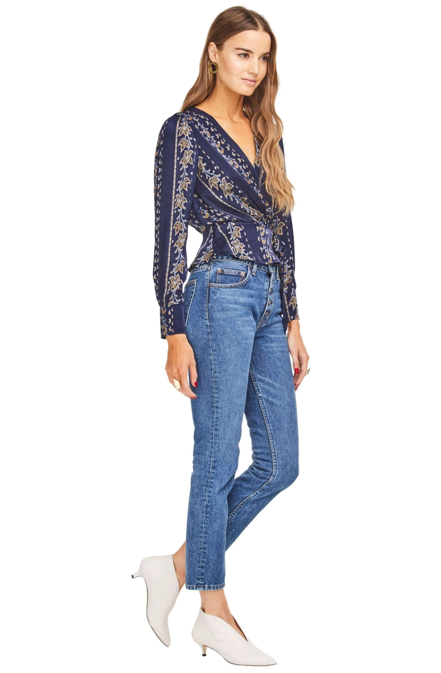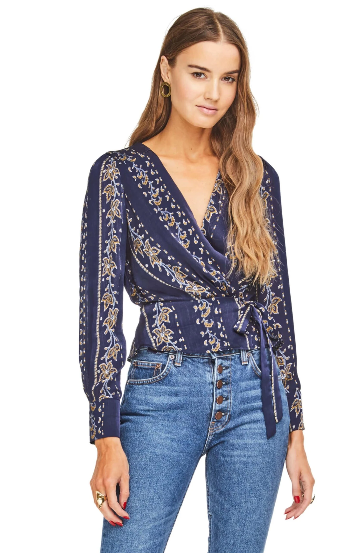 100% Polyester, Length: 23 3/4″ (Size M), Zipper Closure, Dry Clean Only, Wrap Blouse, Paisley, Model is Wearing Size S, Model’s Measurements: Height 5’10” // Bust 34″ // Waist 24″ // Hips 34″, Fits True to Size, Style#ACT13946