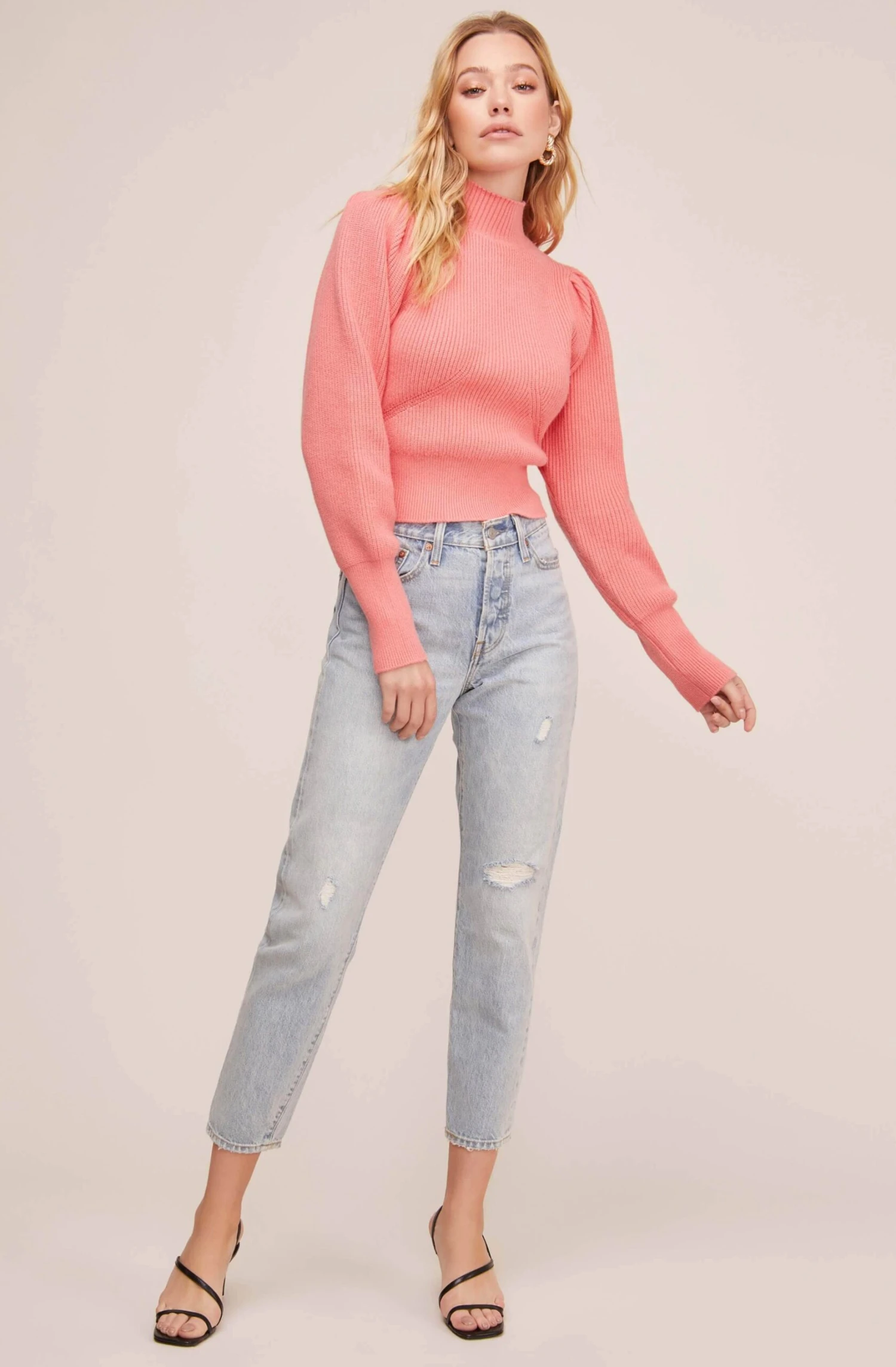 Major sleeve interest is coming your way! This luxe knit sweater features a ribbed construction that accentuates a mock neck collar and long puff sleeves.