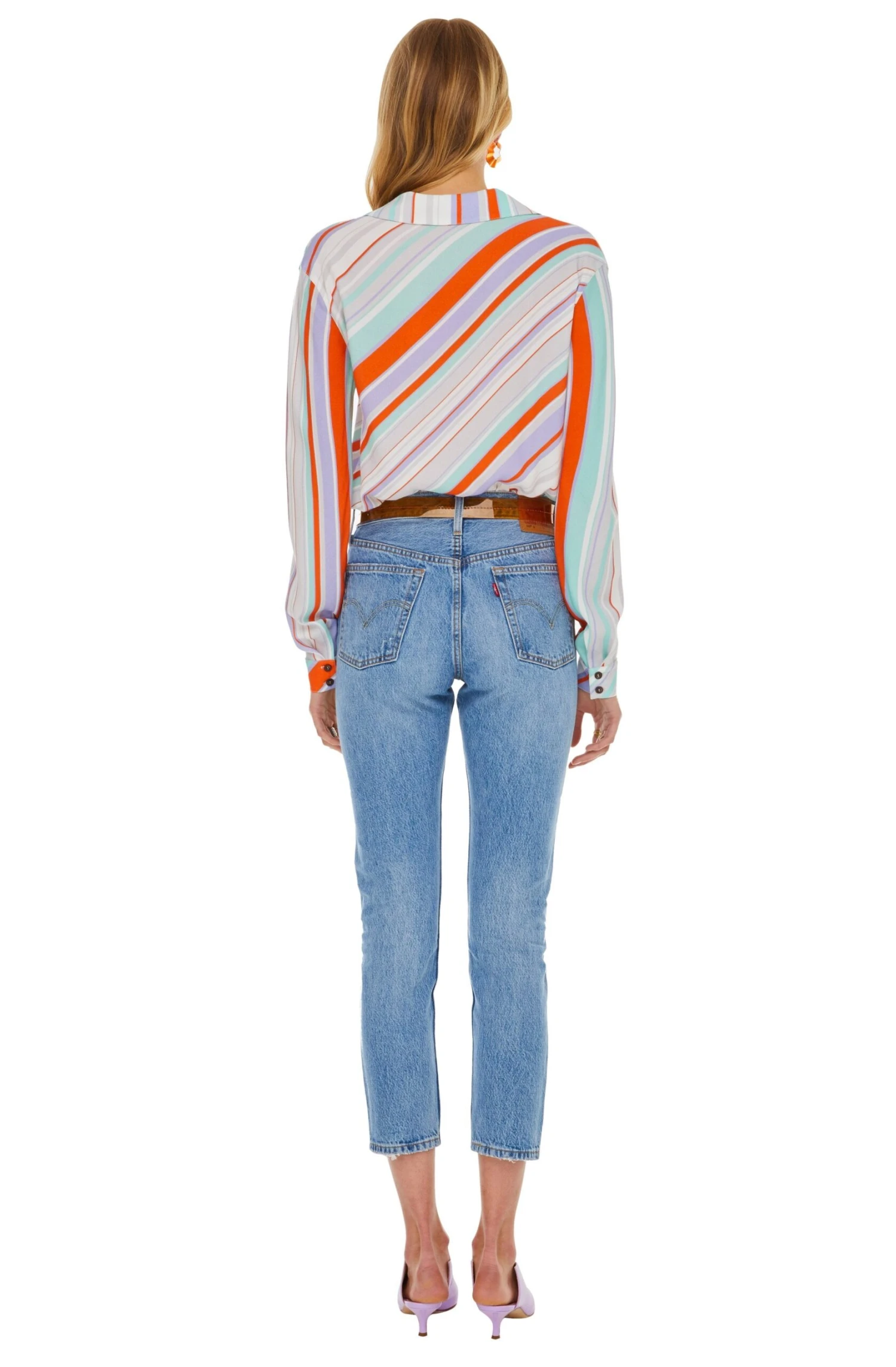 100% Viscose, Contrast: 92% Polyester / 8% Elastane, Length: 27″ (Size M), Snap Tape Closure, Dry Clean Only, Striped, Blouse, Long Sleeved Bodysuit, Model is Wearing Size S, Model’s Measurements: Height 5’11.5″ // Bust 31″ // Waist 23″ // Hips 34″, Fits True to Size, Style#ACT15192