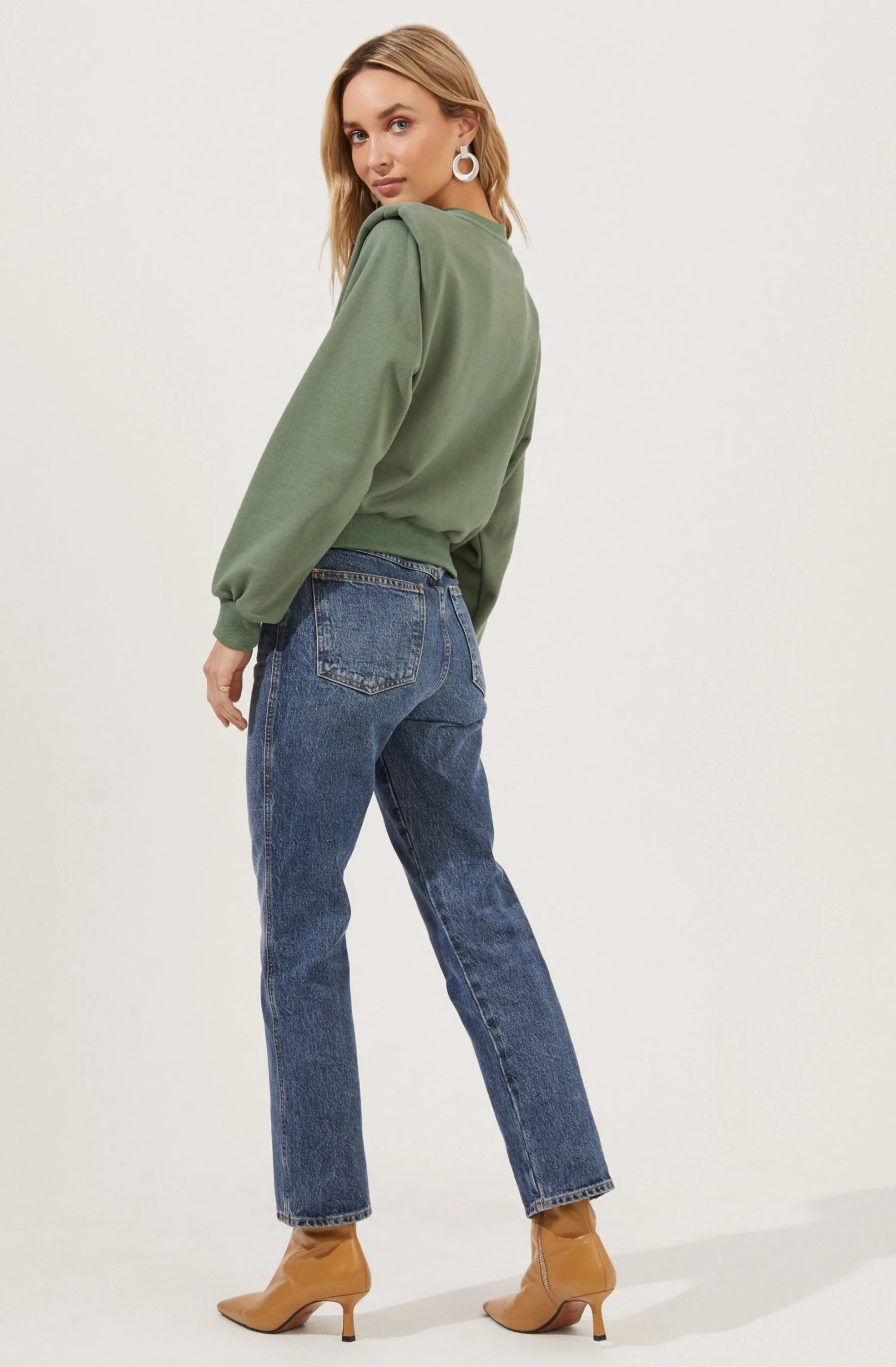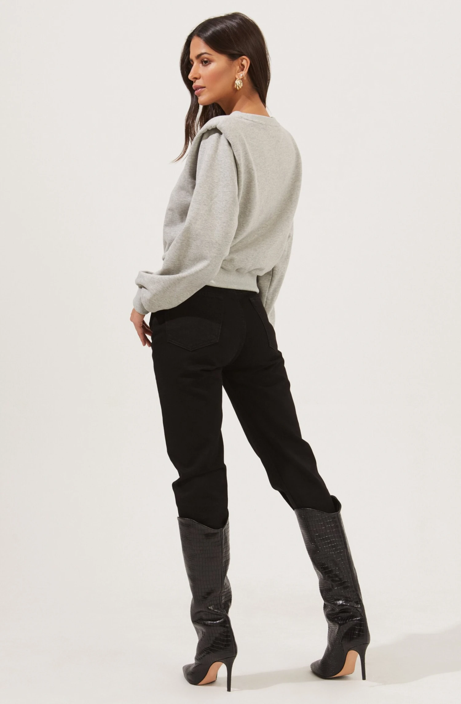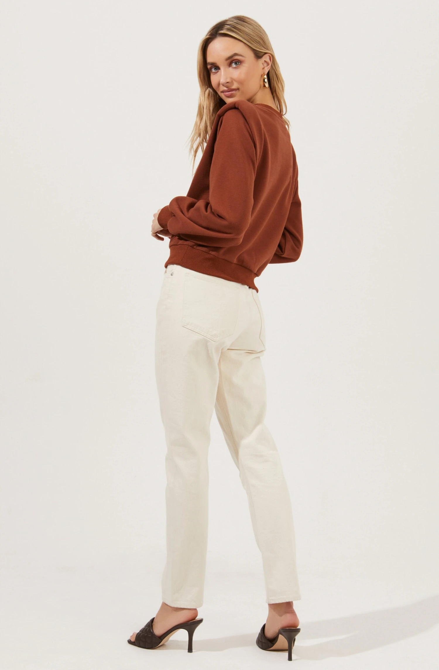 The Sparrow Sweatshirt features a crew neckline that leads to a relaxed fit. Long sleeves with statement padded shoulders.