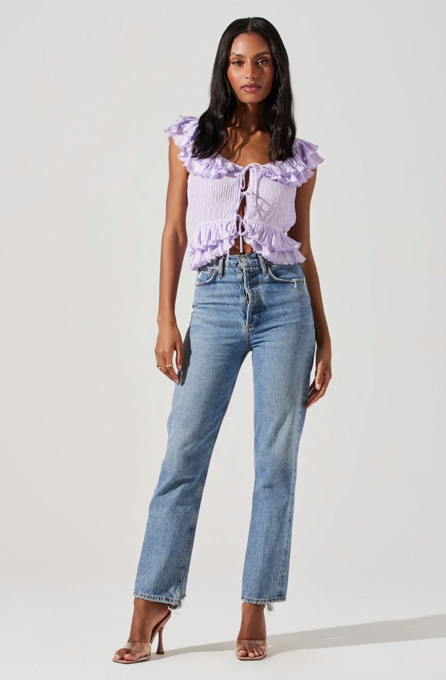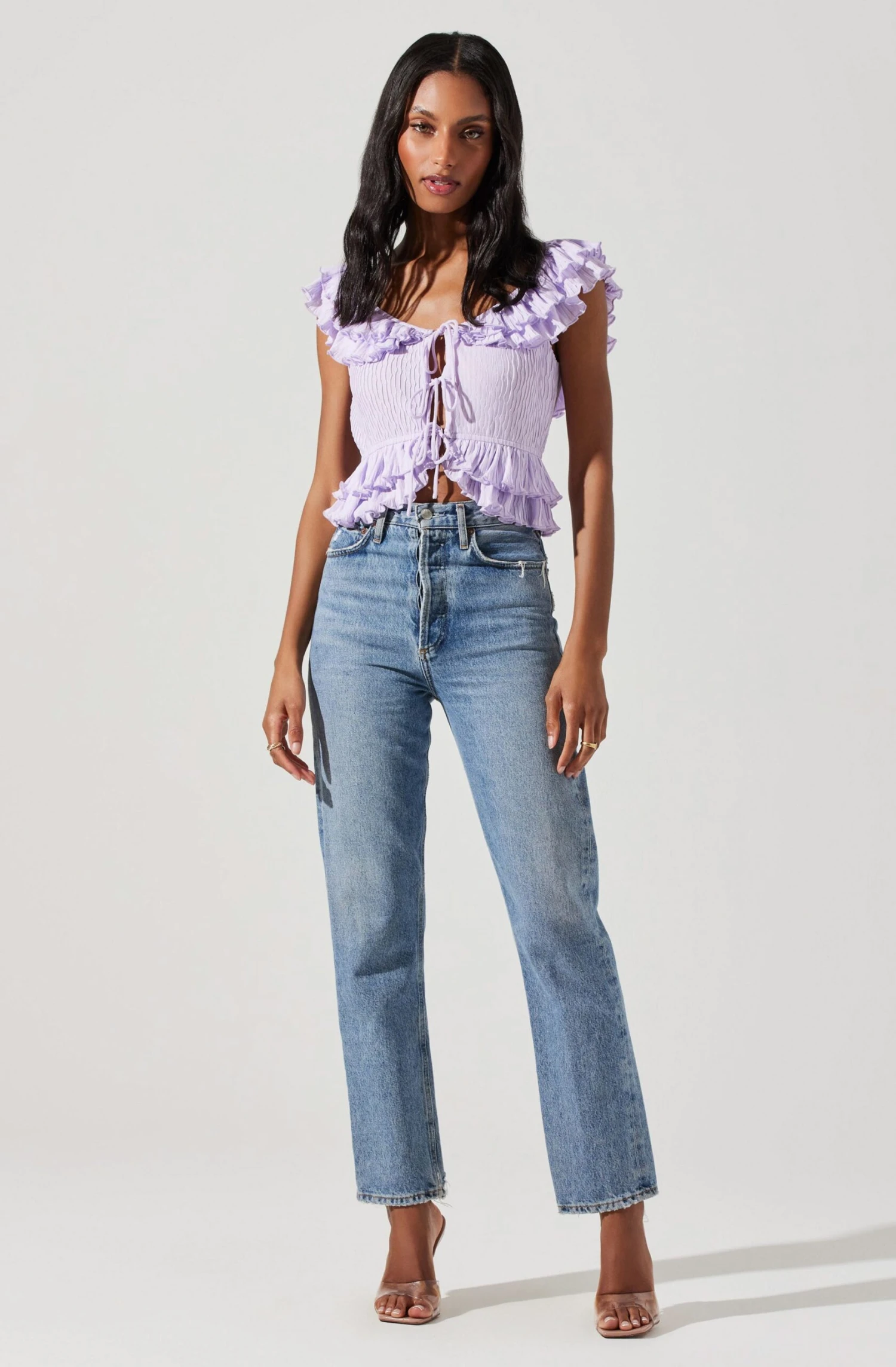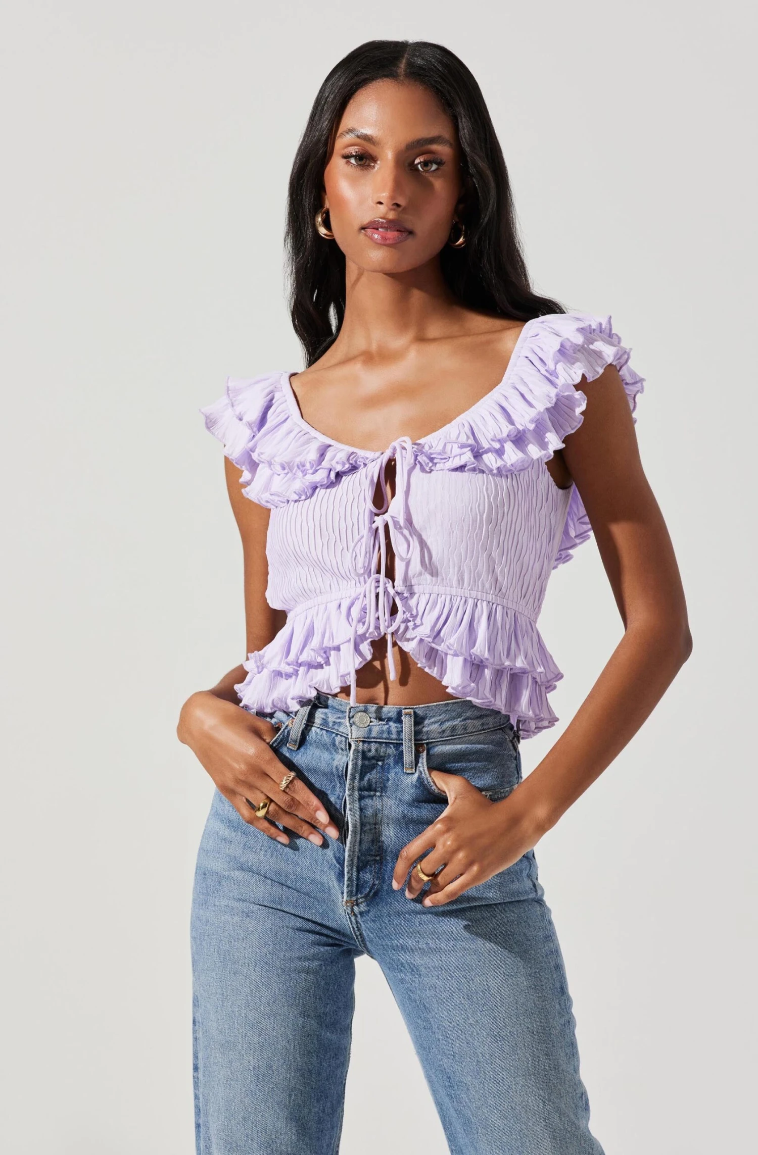 Be the first to review “Tiered Ruffle Sleeve Tie Front Top” Cancel reply