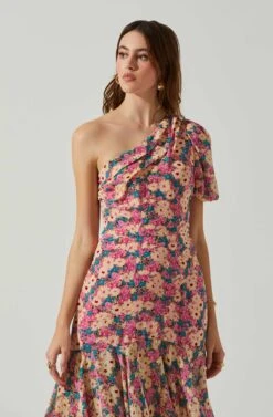 The Valdez Top features a pleated design that starts with a plunging V neckline and descends to a wrap front. Hidden hook-and-eye closure at the neckline. Long oversized sleeves. Padded shoulders. Elastic cuffs and waist.